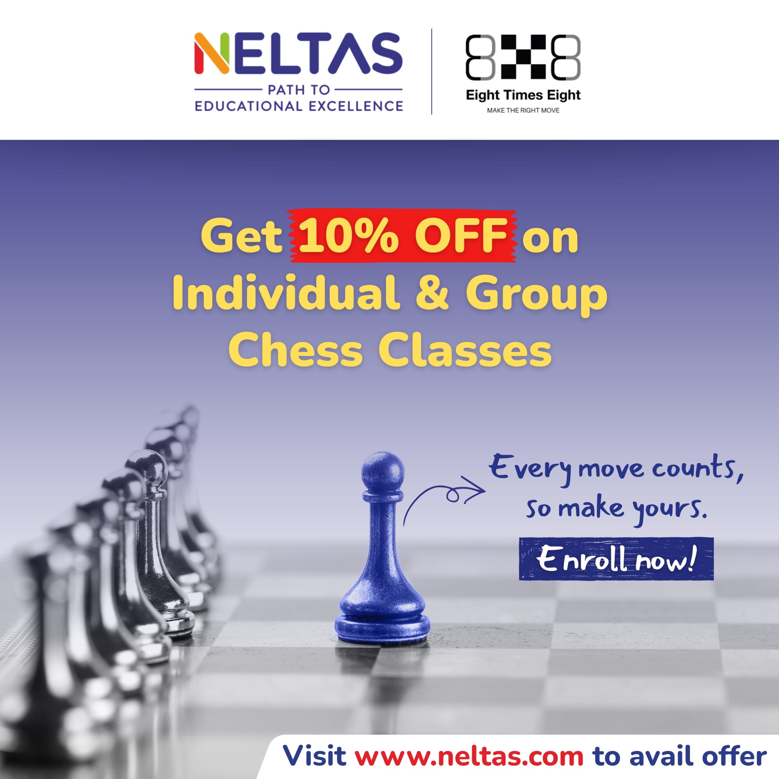 NELTAS in collaboration with Eight Times Eight brings you an exclusive 10% discount on individual and group chess classes.
